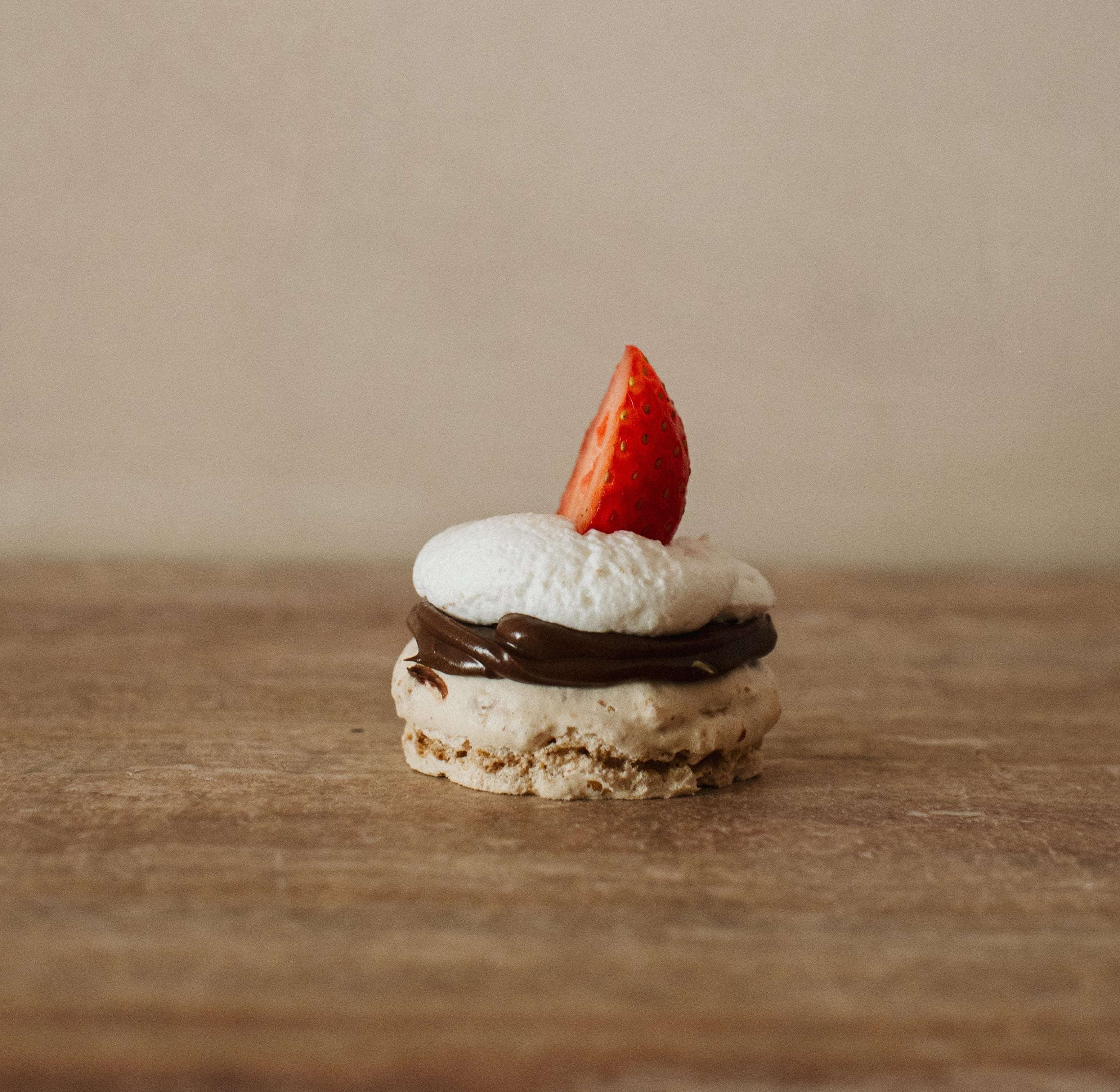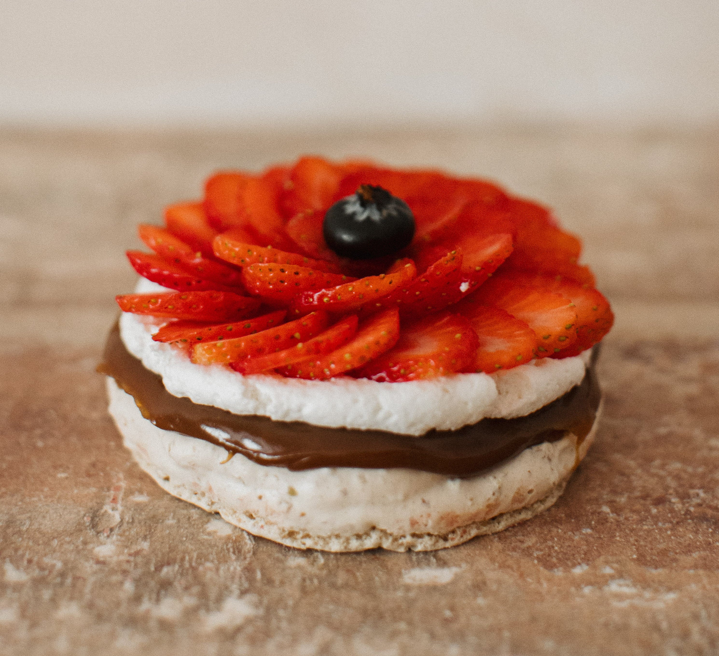 - Y una capa final de nata fresca y fruta de temporada, que evoluciona con el año: fresas en primavera, higos en otoño, frutos rojos en invierno.